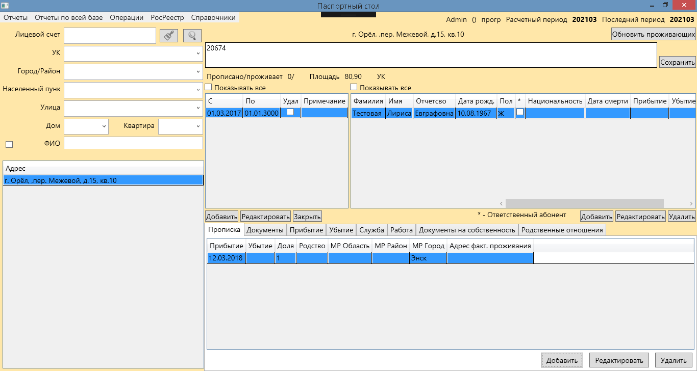 - Поквартиный учет зарегистрированных граждан