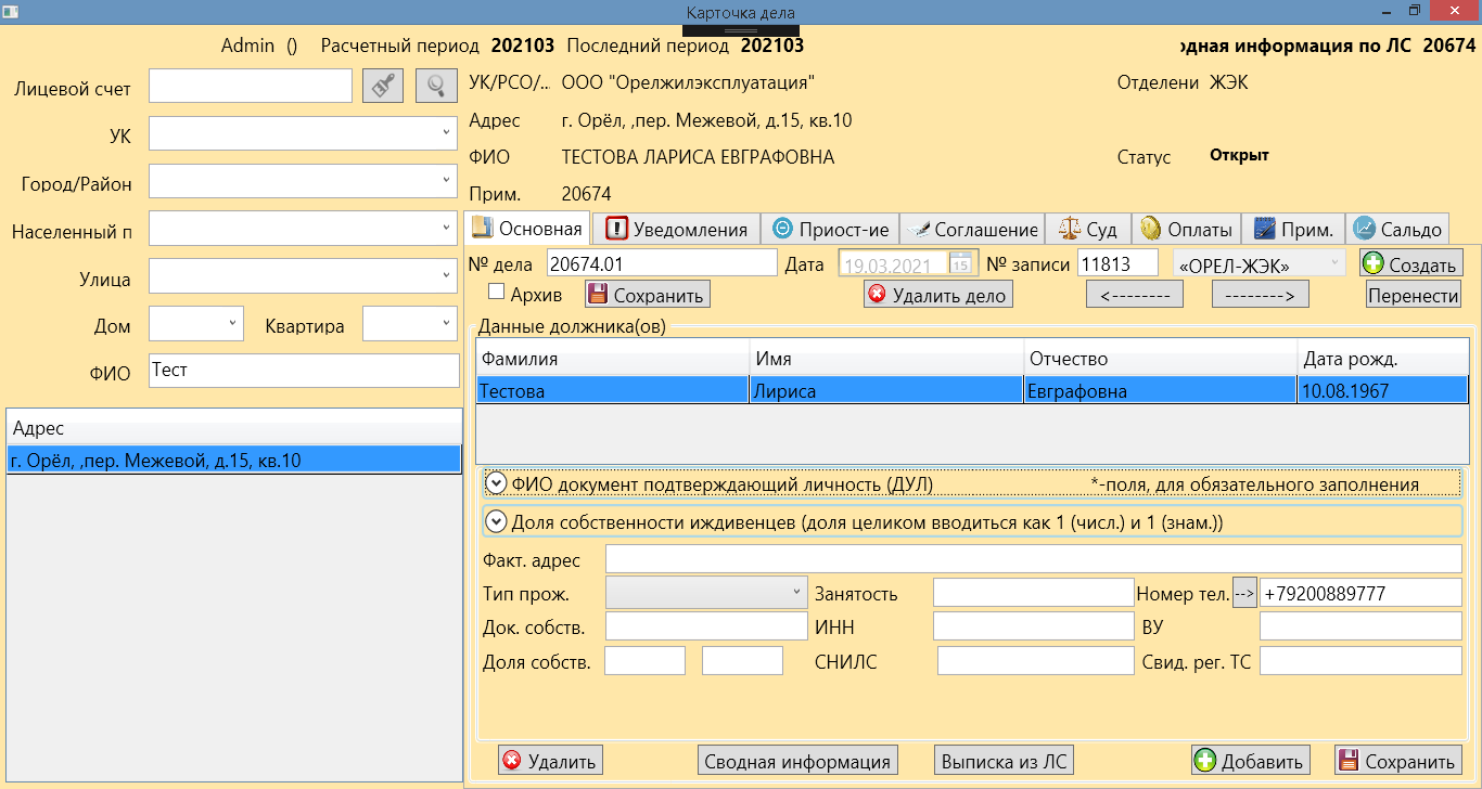 Программа позволяет осуществить работу с должниками.